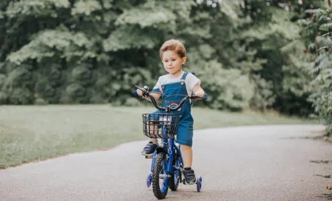 From the age of 3, when the child has acquired balance, particularly through the use of a balance bike, choosing a first two-wheeled children’s bike of 12 or 14 inches, with or without removable training wheels, allows them to learn to pedal.